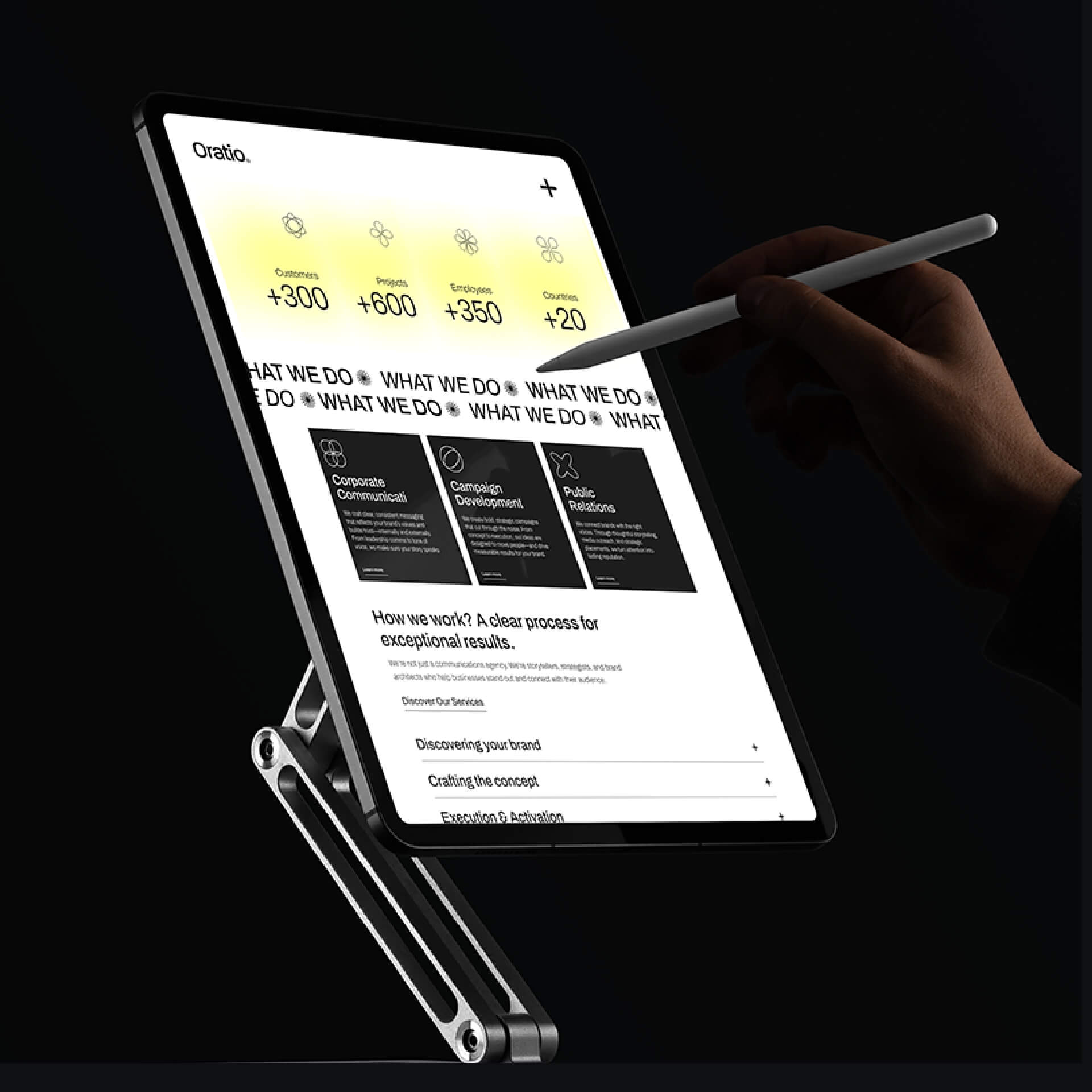 Oratio verbindet strategische Kommunikation mit klarem, funktionalem UI/UX-Design. Die Gestaltung legt den Fokus auf Struktur, Verständlichkeit und intuitive Nutzerführung. Ein digitales Erscheinungsbild, das Inhalte ordnet, Prozesse vereinfacht und Kommunikation visuell ruhig und zugänglich macht.